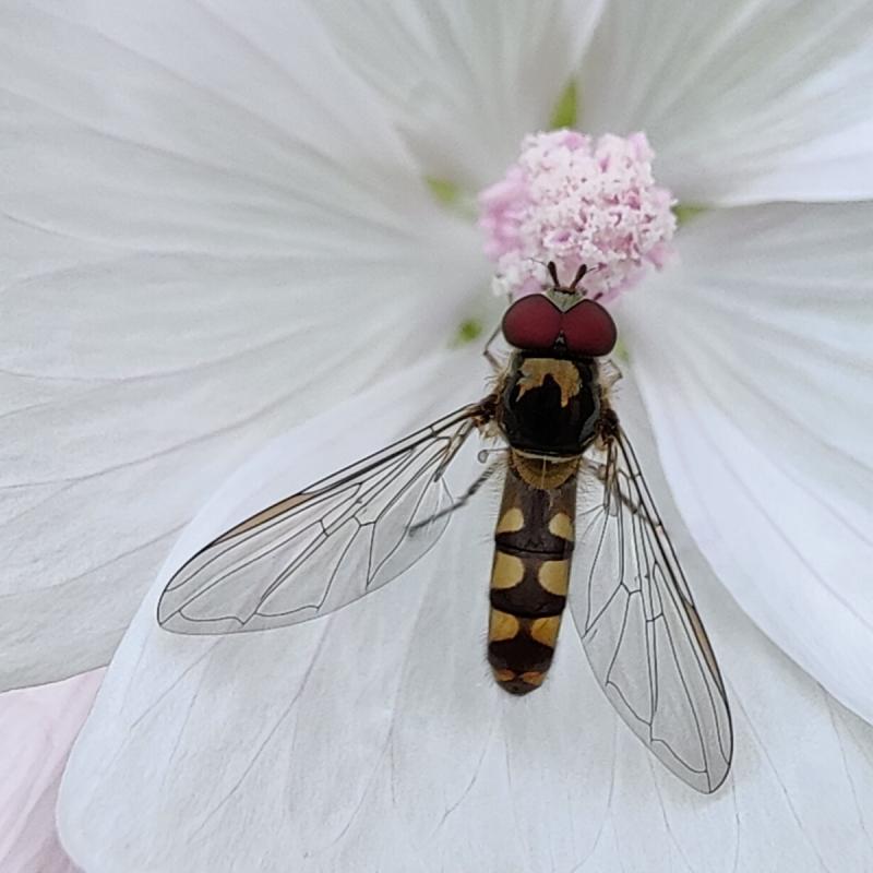 Hoverfly with mallow bouquet